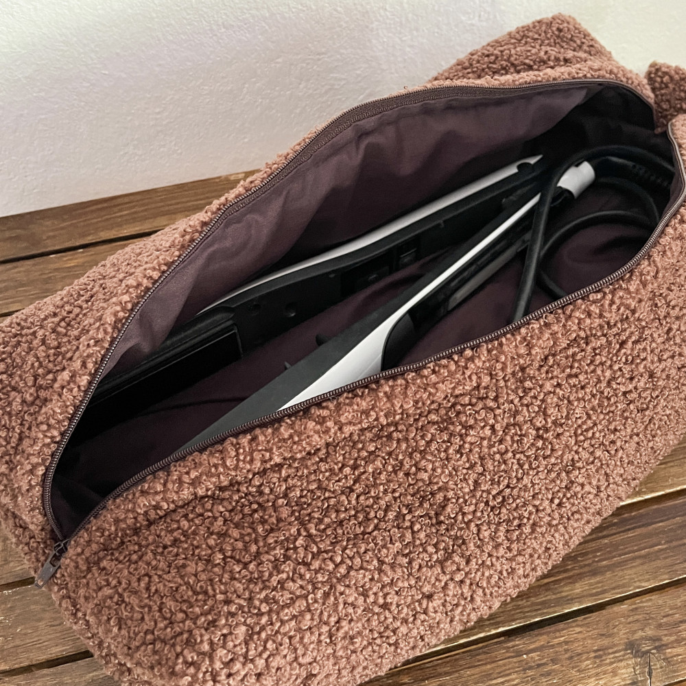 - Εξωτερικό ύφασμα: Καφέ χνουδωτό ύφασμα