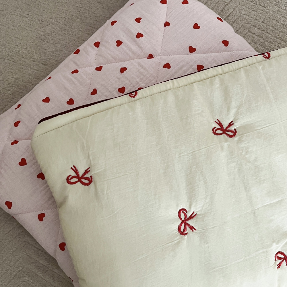 Κράτησε το laptop σου ασφαλές και κομψό με τη Red Bows Laptop Case. Φτιαγμένη στο χέρι από 100% βαμβακερό ύφασμα και αφρώδες ενισχυτικό στο εσωτερικό, συνδυάζει ελαφριά προστασία και διαχρονικό design για δουλειά, σπουδές ή ταξίδια.