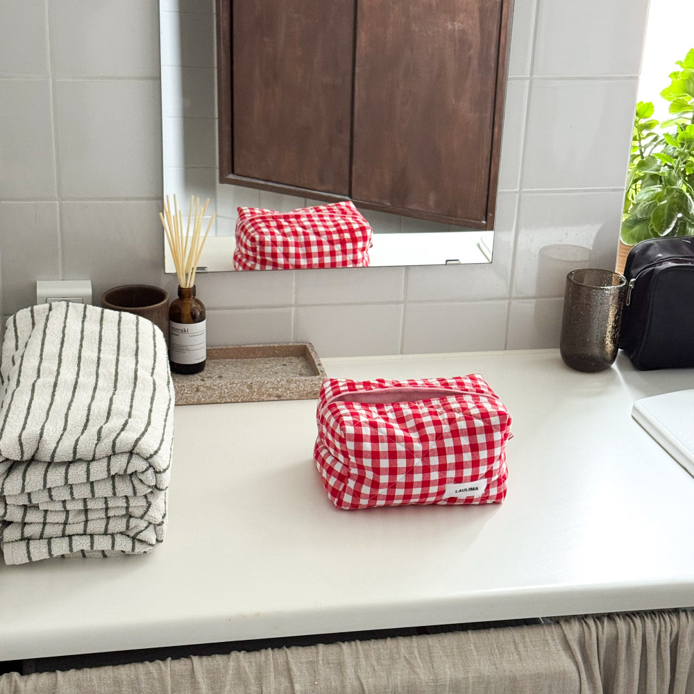Οργάνωσε τα essentials σου με το Red Gingham Makeup Bag, το χειροποίητο νεσεσέρ από 100 % βαμβάκι, προσεκτικά ραμμένο στην Ελλάδα. Ελαφρύ αλλά ευρύχωρο, φιλοξενεί foundation, κραγιόν, πινέλα, skincare και ο,τιδήποτε άλλο χρειάζεσαι στη καθημερινότητα σου, σε ένα μόνο pouch.